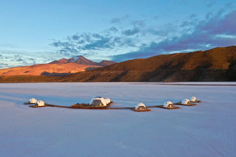 In the middle of that salt desert, Kachi Lodge, an original ecological lodge composed of a set of geodesic-style domes surprise us. The lodge feeds on solar energy, practices a 0% plastic policy and even the cover of the domes are recyclable.