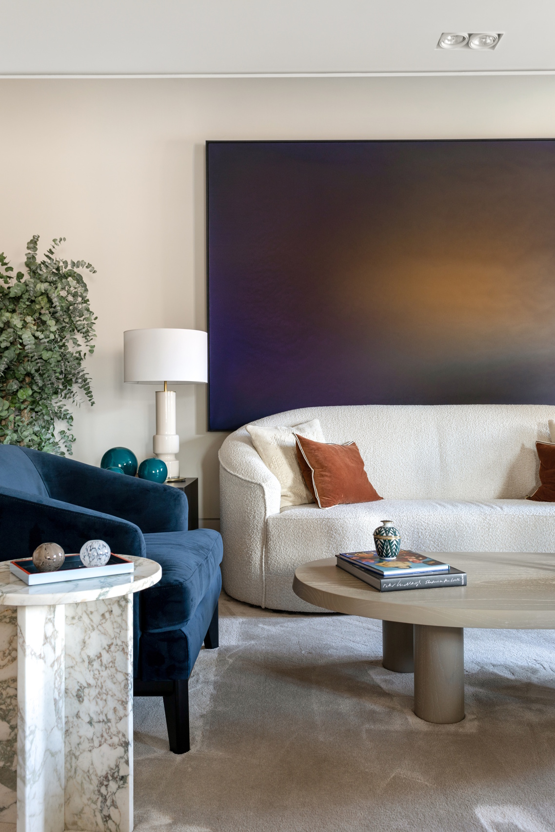 Los 350 metros construidos han sido diseñados con una distribución armoniosa, donde cada estancia fluye de manera natural. En el hall de entrada, una impresionante chimenea de piedra natural enmarcada en dos hornacinas crea un punto focal imponente.